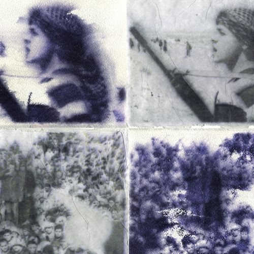 Prints of digitally processed photos and collaged stencils, homage to Vittorio Arrigoni